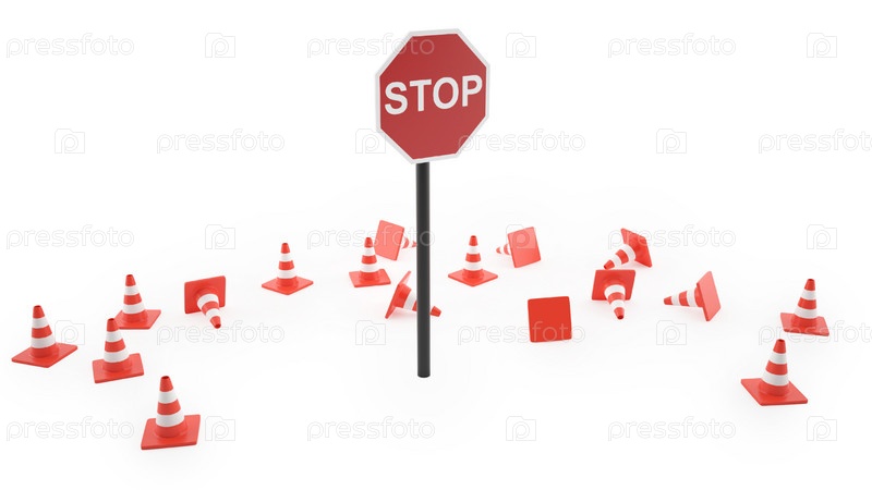 Конусы и дорожный знак