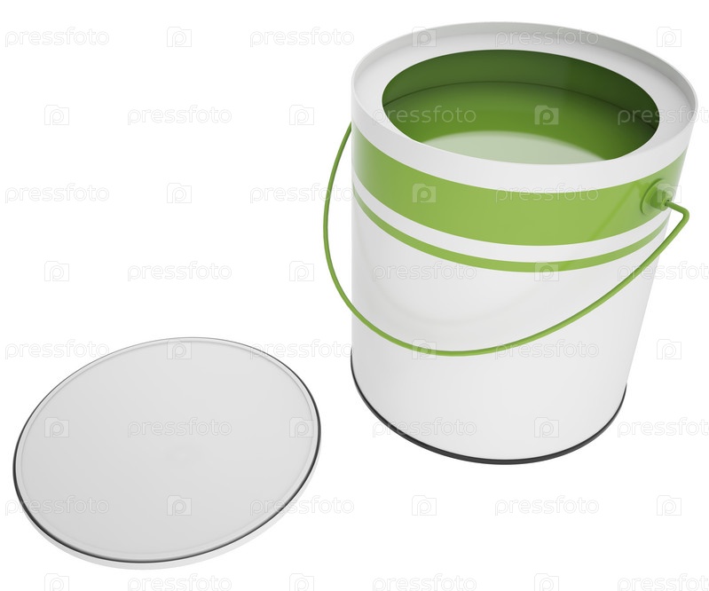 Банка зеленой краски, изолированная на белом фоне