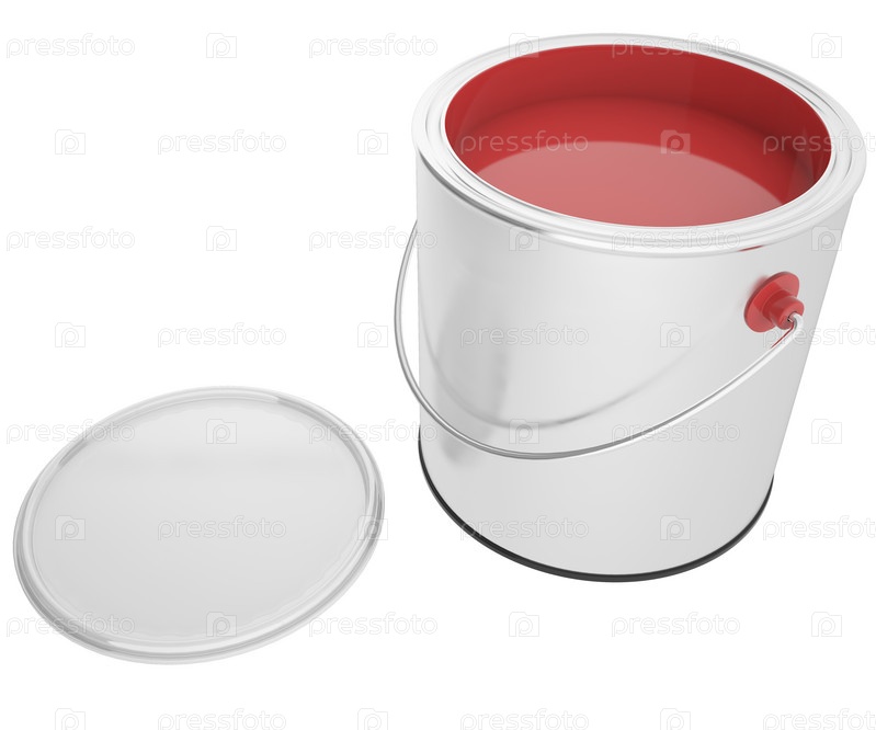 Банка красной краски на белом фоне