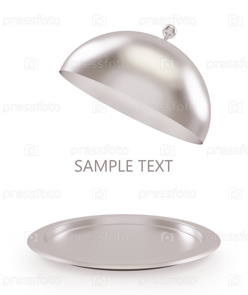 Серебряный поднос на белом фоне