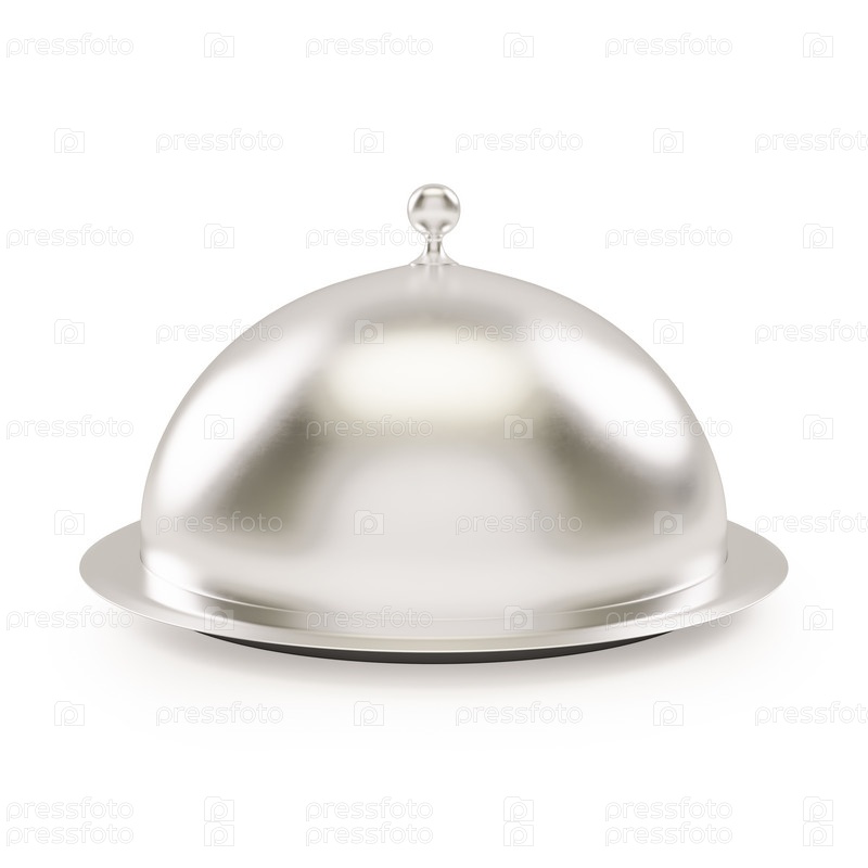 Закройте серебряное блюдо или поднос с пространством для размещения объекта, изолированные на белом фоне