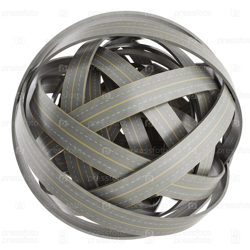 Абстрактная сфера запутанные дороги, изолированные на белом фоне