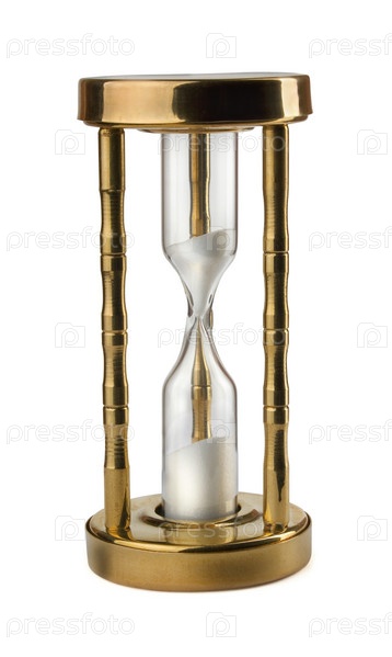 Старые песочные часы из латуни на белом