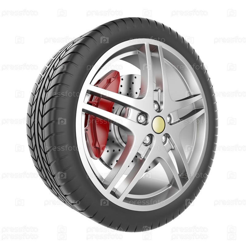 Колесо спортивного автомобиля, изолированное на белом фоне