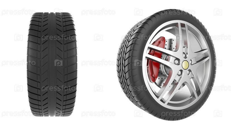 Автомобильное колесо на белом фоне