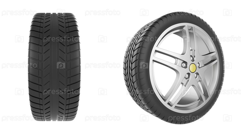 Автомобильное колесо на белом фоне