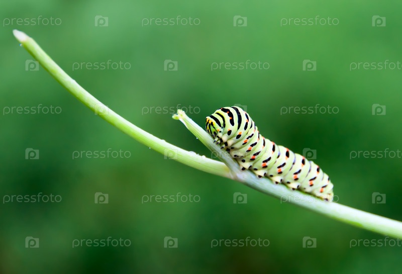 Гусеница на зеленом фоне