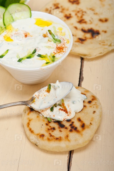 Арабский салат с козим йогуртом и огурцом