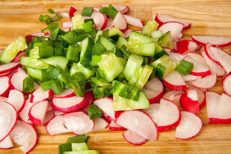 Нарезанный редис и огурец