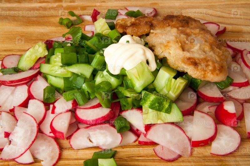 Нарезанный редис и огурец