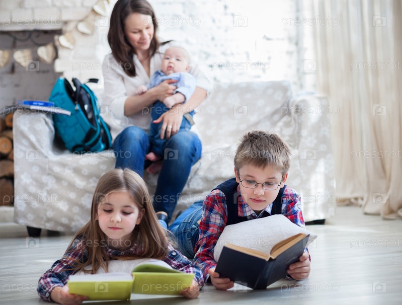 Дети читают в гостиной
