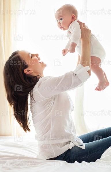 Смеющиеся мать и ребенок
