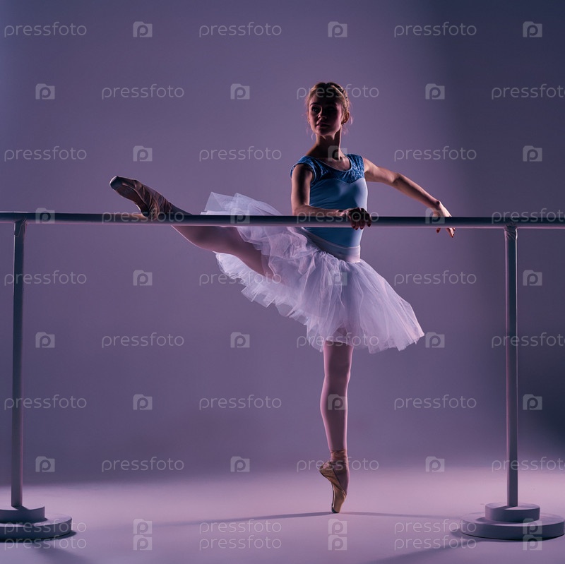 Классическая балерина позирует у снаряда