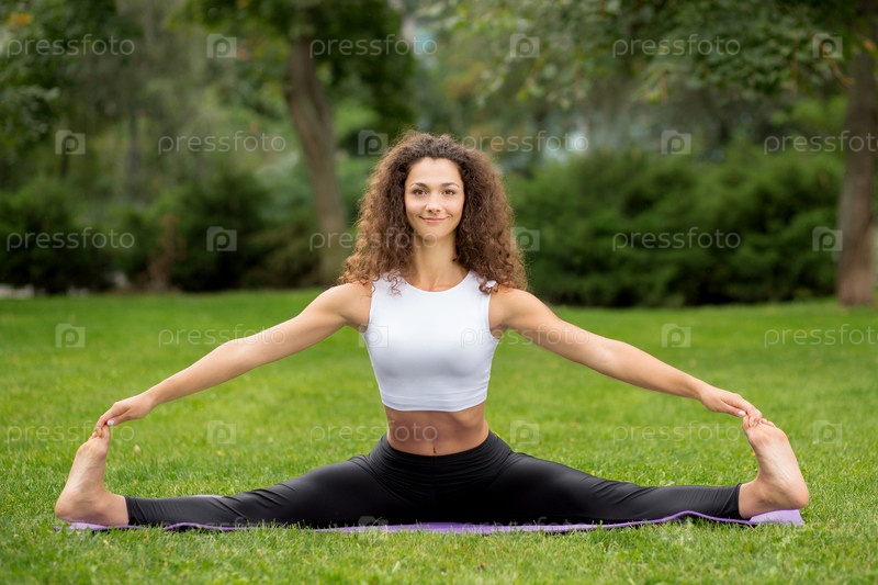 Симпатичная женщина занимается йогой