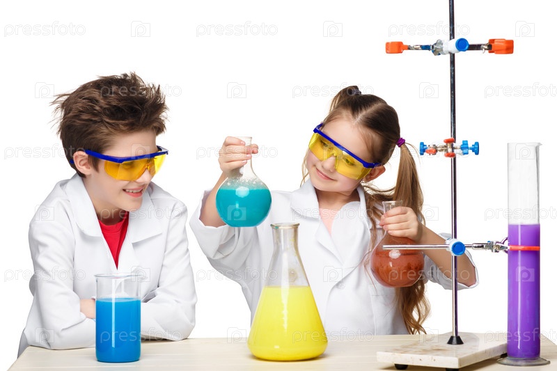 Дети проводят эксперимент на уроке химии
