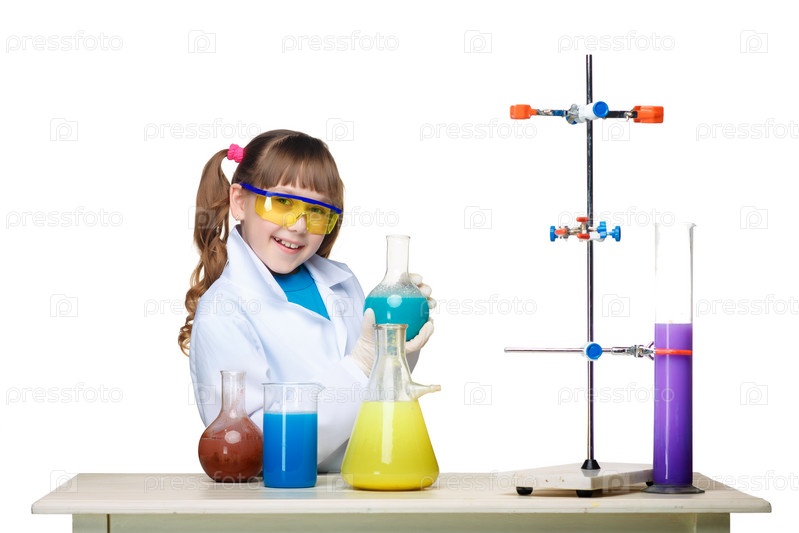 Девочка проводит химический эксперимент в лаборатории