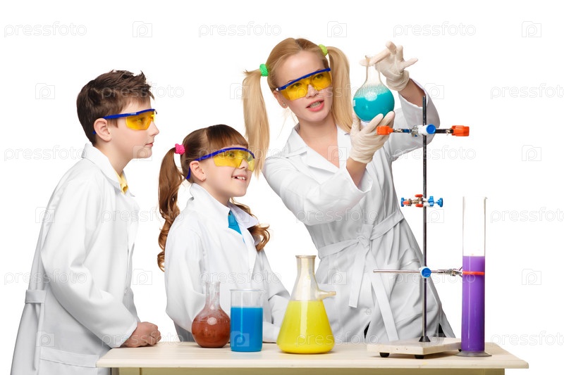 Дети проводят эксперимент на уроке химии