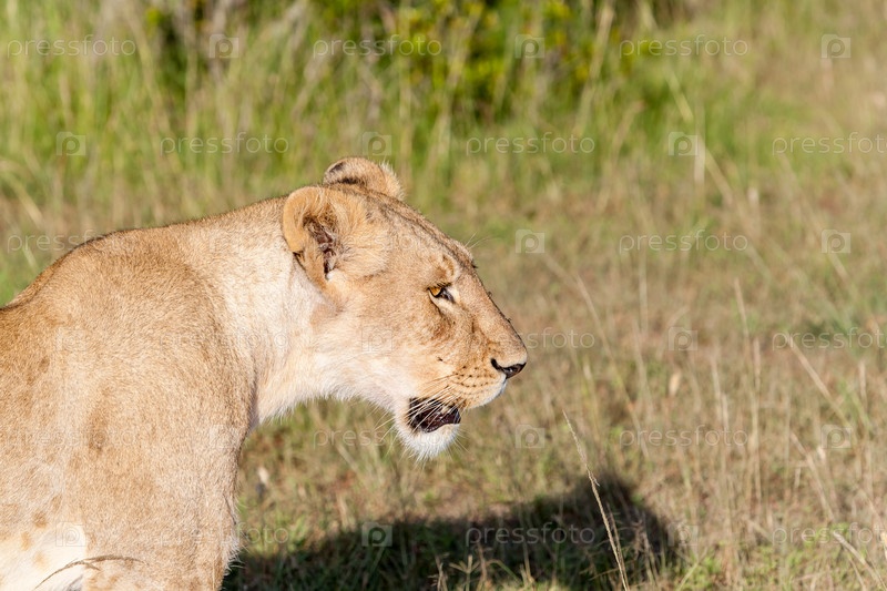 Молодая львица в саванне