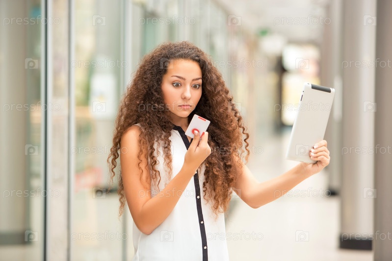 Девушка оплачивает покупку банковской картой