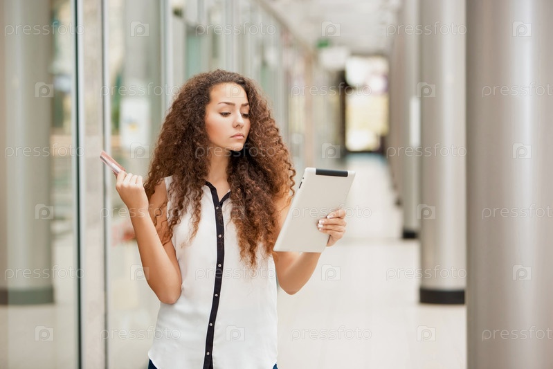 Девушка оплачивает покупку банковской картой