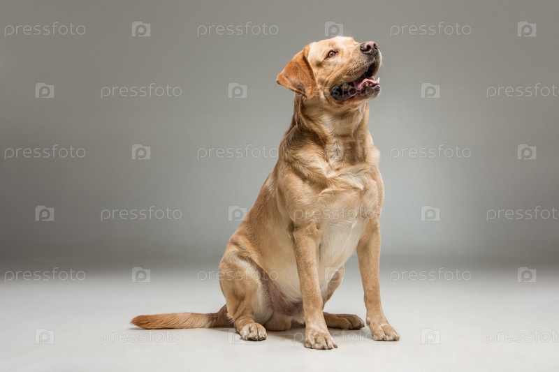 Лабрадор на сером фоне