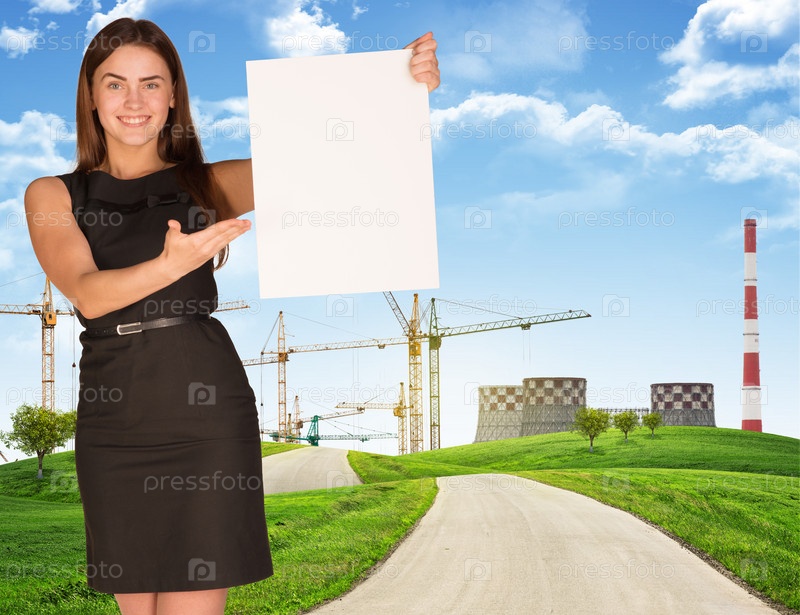 Бизнес-леди с шаблоном для текста