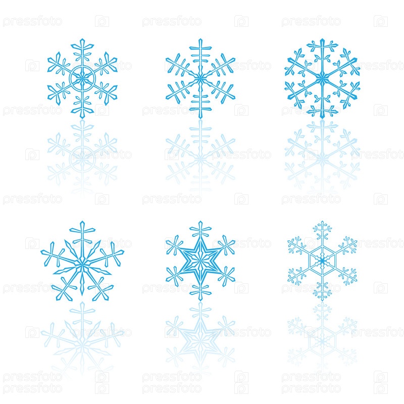 Различные снежинки изолированы на белом фоне