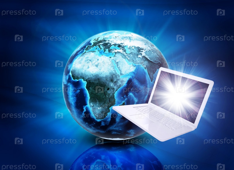 Земля и ноутбук на абстрактном фоне