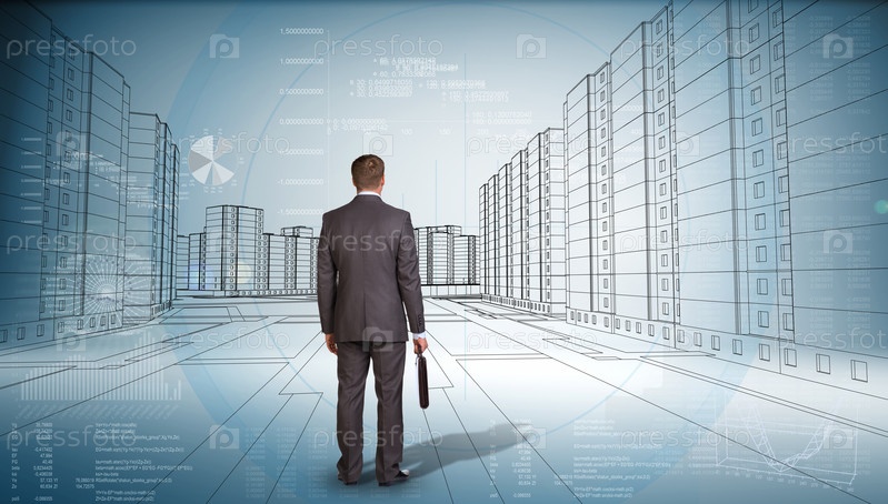 Бизнесмен на фоне абстрактного города
