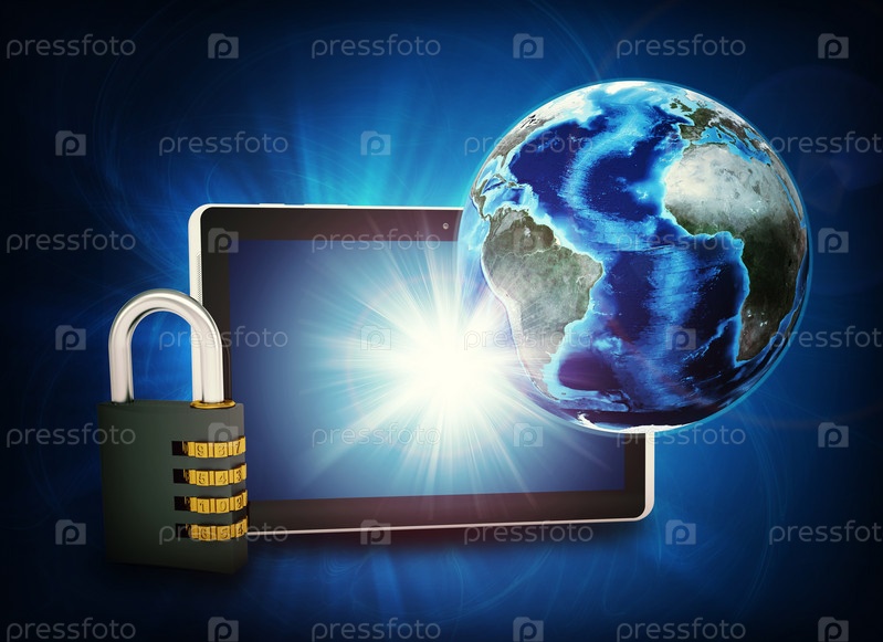 Модель земли с планшетом и замком
