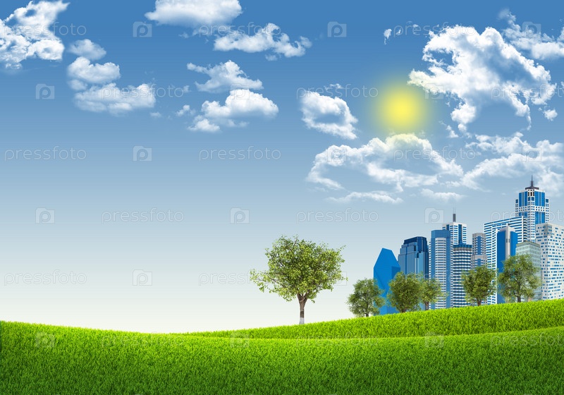 Городской пейзаж на фоне природы