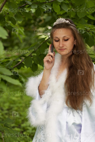 Молодая девушка, стоящая под деревом, говорит по телефону