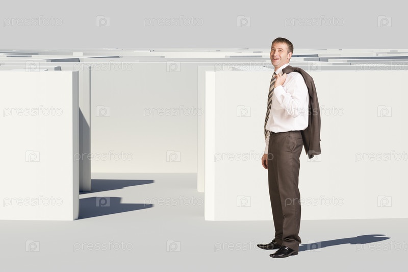 Бизнесмен идет в лабиринт
