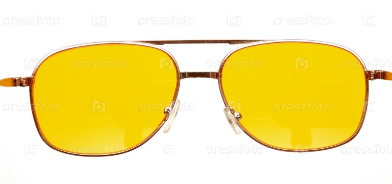 Желтые очки на белом фоне