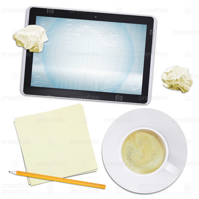 Планшет, стикеры и кофе