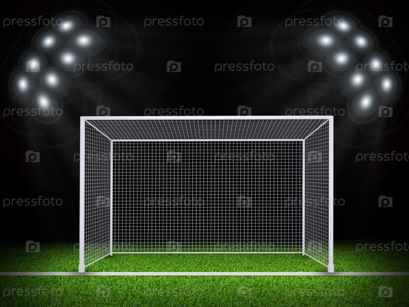 Освещенный стадион с воротами