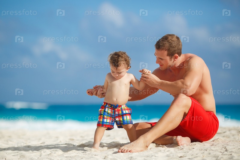 Отец с сыном отдыхают на пляже