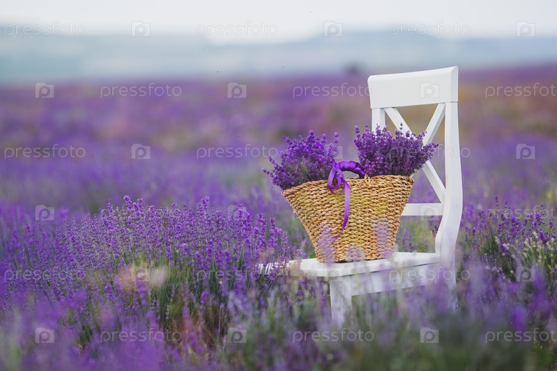 Цветущая лаванда в плетеной сумке