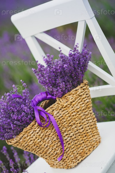 Цветущая лаванда в плетеной сумке