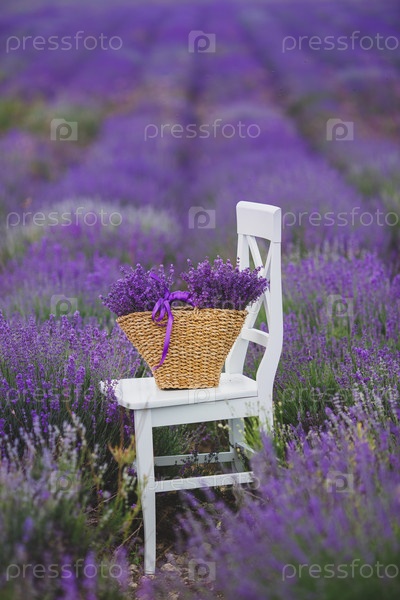Цветущая лаванда в плетеной сумке