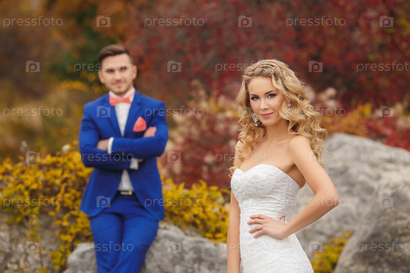 Молодожены в осеннем парке