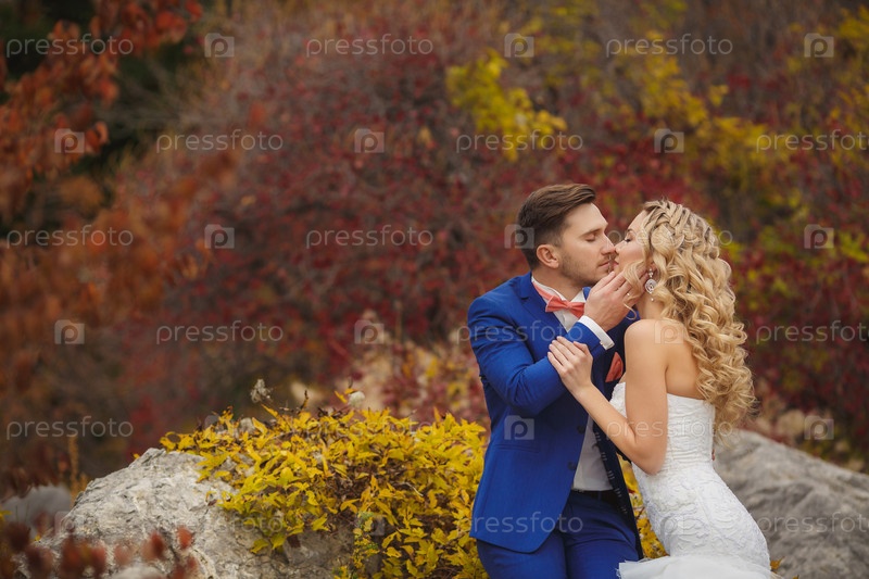 Молодожены в осеннем парке