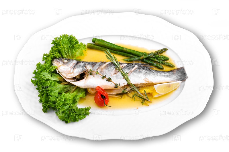 Блюдо из рыбы на белом фоне