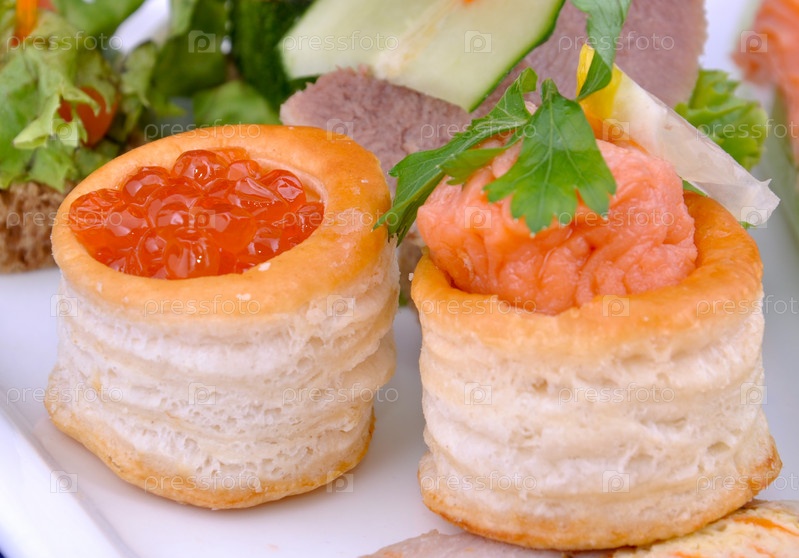 Тарталетки с красной икрой и лососем