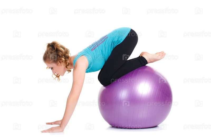 Женщина занимается с гимнастическим мячом