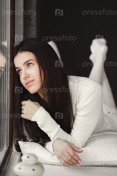 Женщина лежит на подоконнике