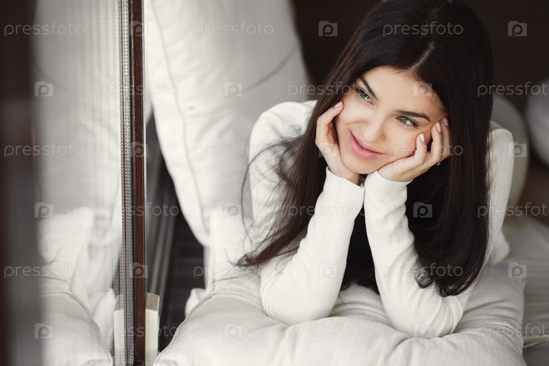 Женщина лежит на подоконнике