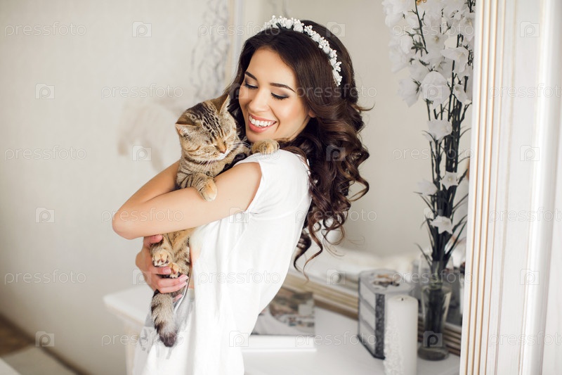 Женщина держит кота