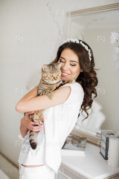 Женщина держит кота