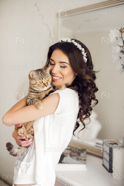 Женщина держит кота